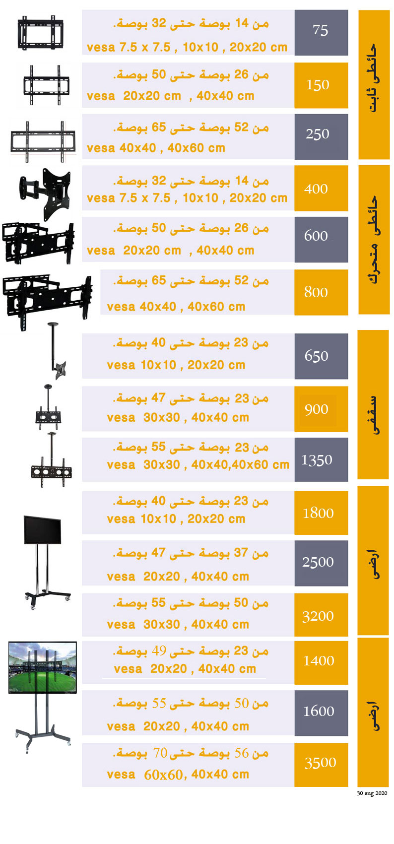 Single Tv up to 50 Inch : 1200 L.E